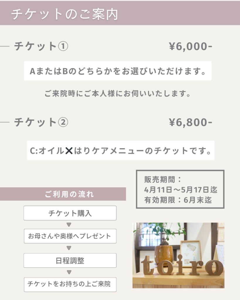 母の日🌷チケットのご案内